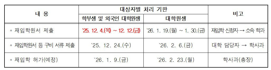 재입학 신청 시,